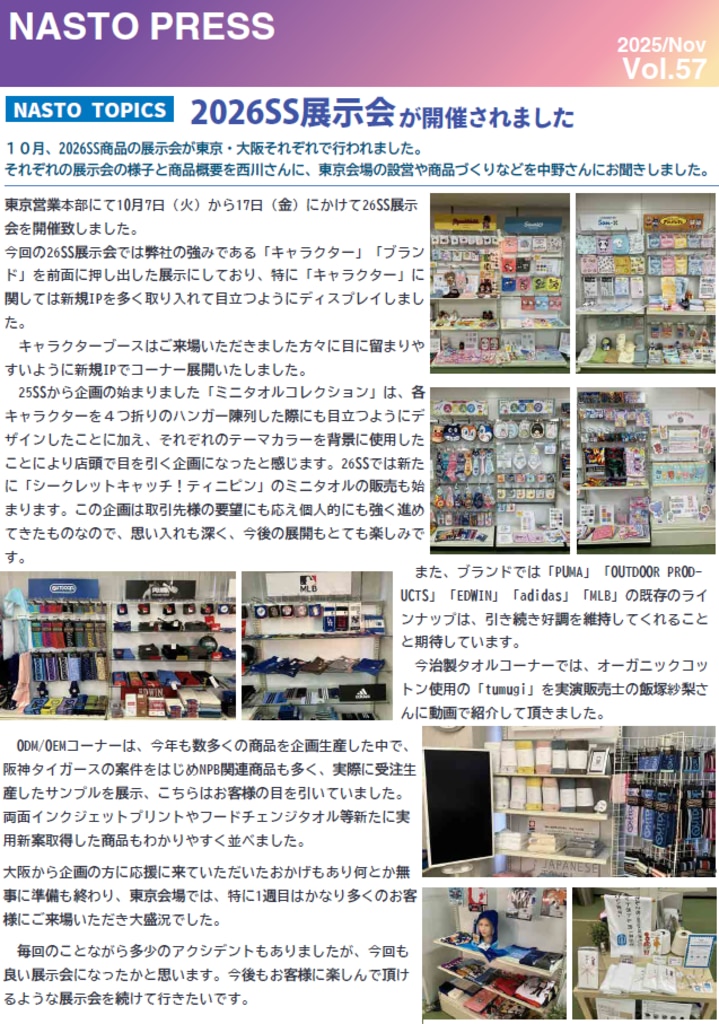 社内誌ナストープレス Vol.57が発行されました。10月に開催した弊社2026SS展示会のレポートを掲載しております。ぜひご覧ください。