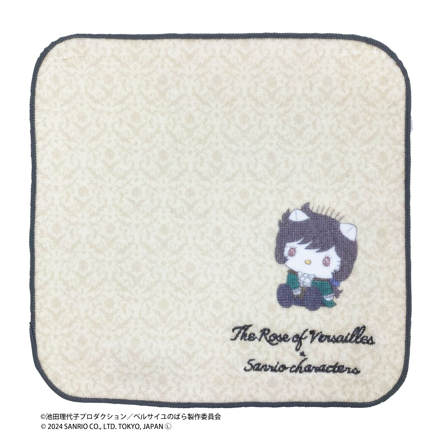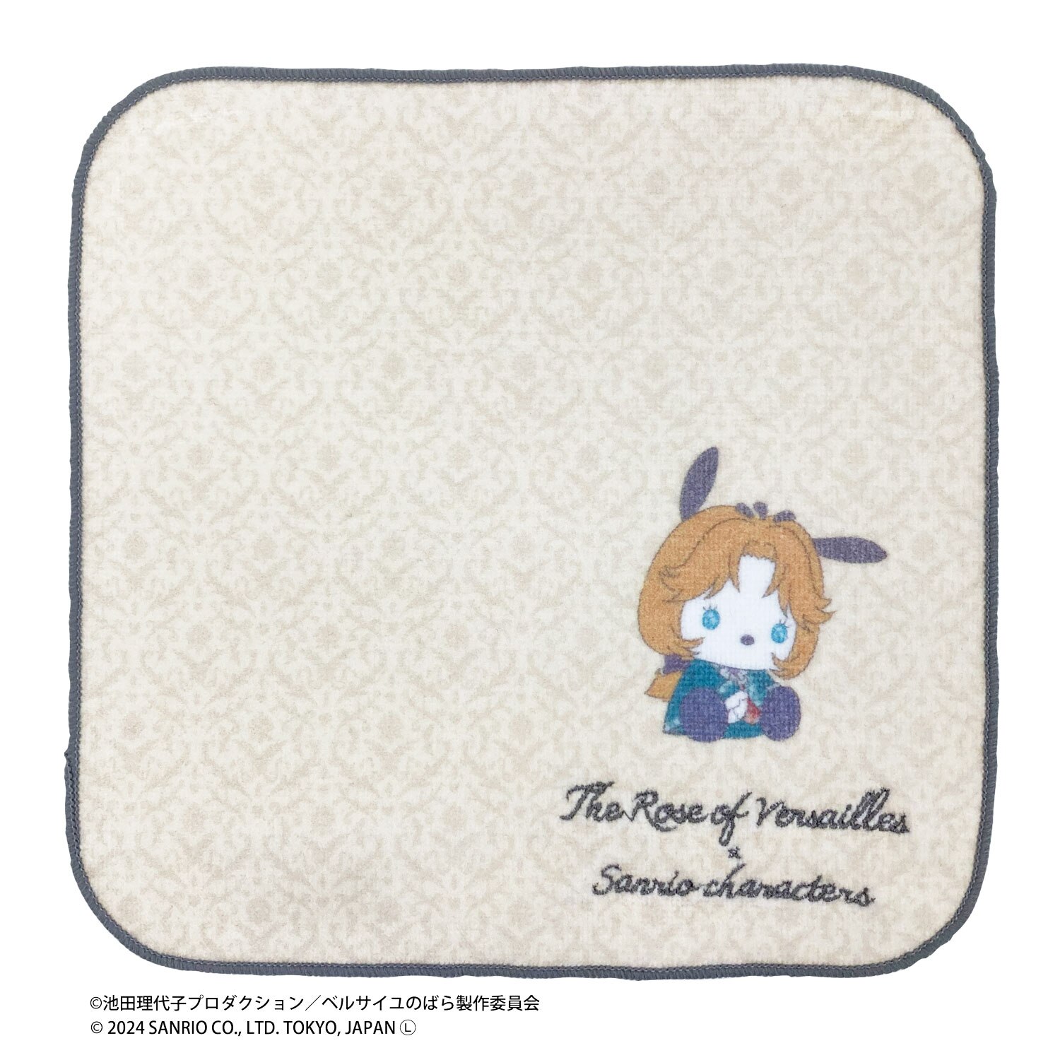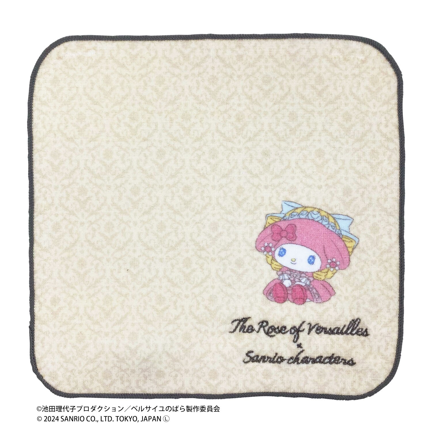 劇場アニメ ベルサイユのばら×サンリオキャラクターズ ぬいぐるみデザインのミニタオルです。ロゴ部分が刺繍仕様になっています。