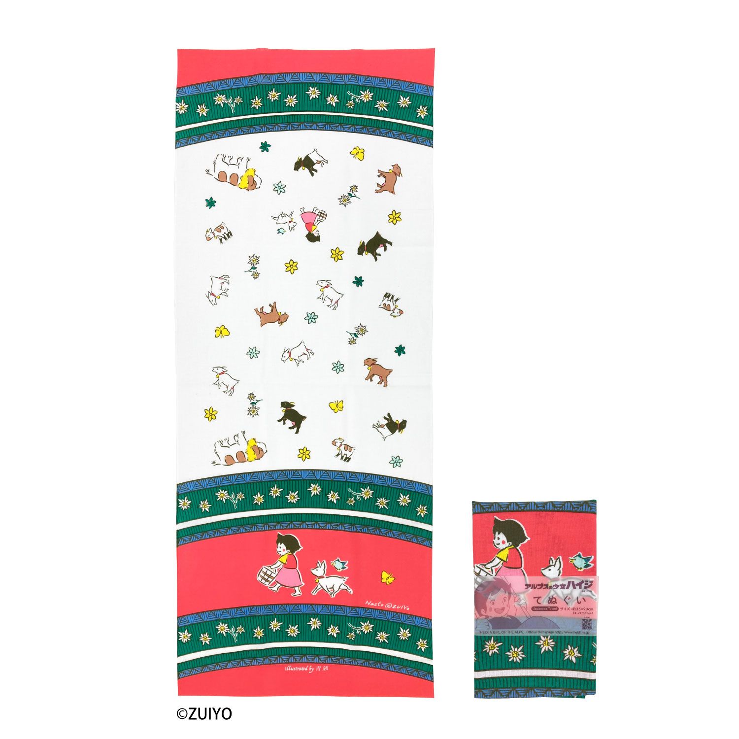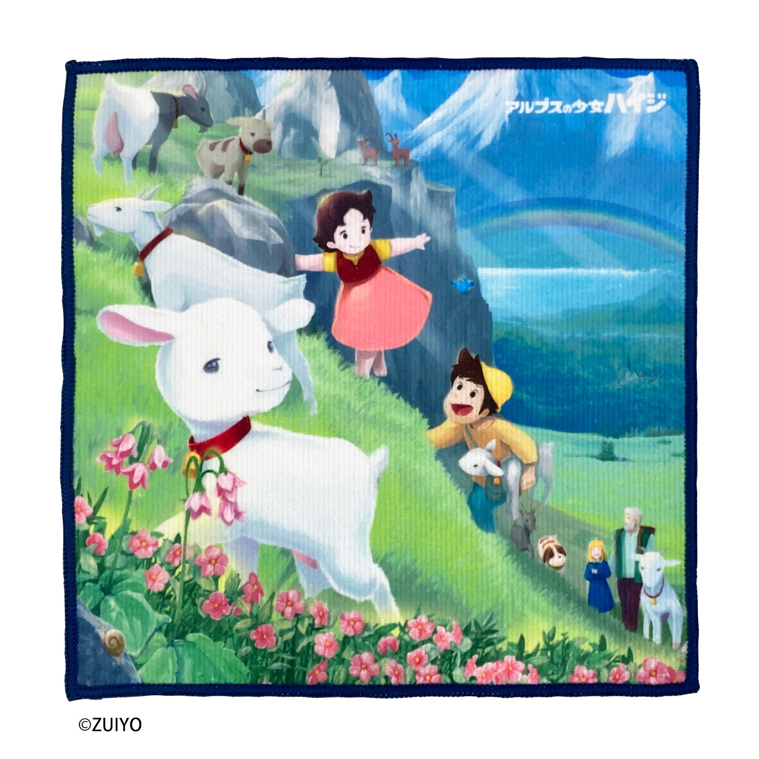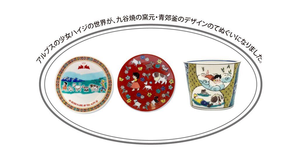 アルプスの少女ハイジの世界が、九谷焼の窯元・青郊窯のデザインのてぬぐいになりました。伝統的な九谷焼の華やかな絵柄と、ハイジの世界観が美しく調和した、使うほどに愛着がわくてぬぐいです。