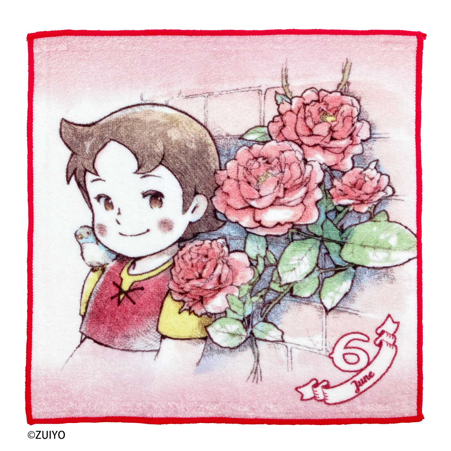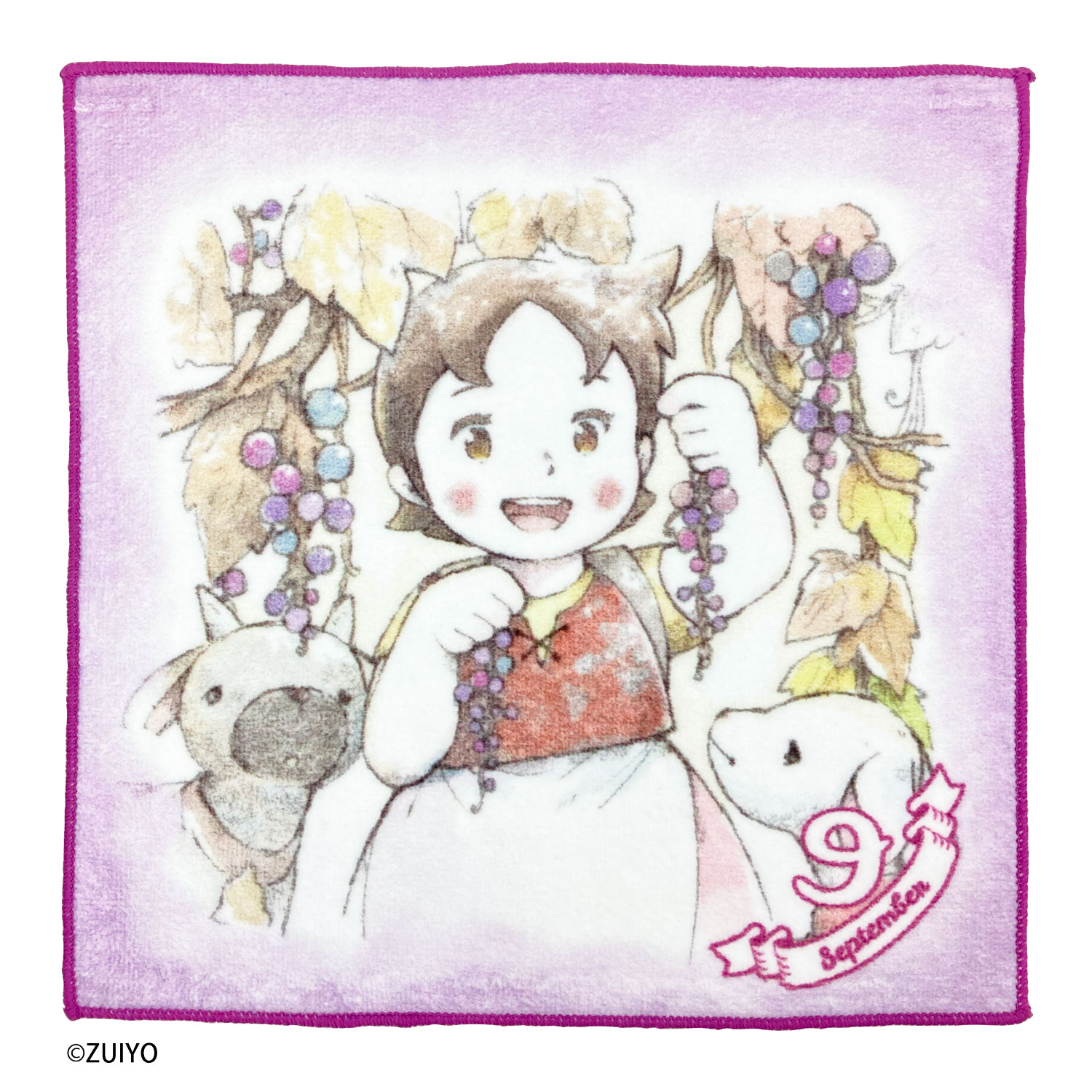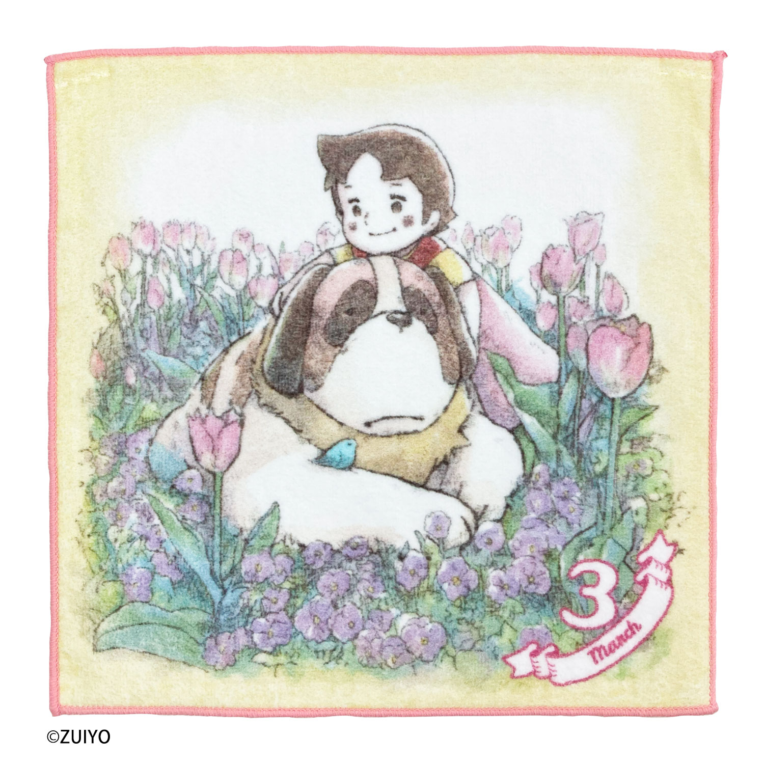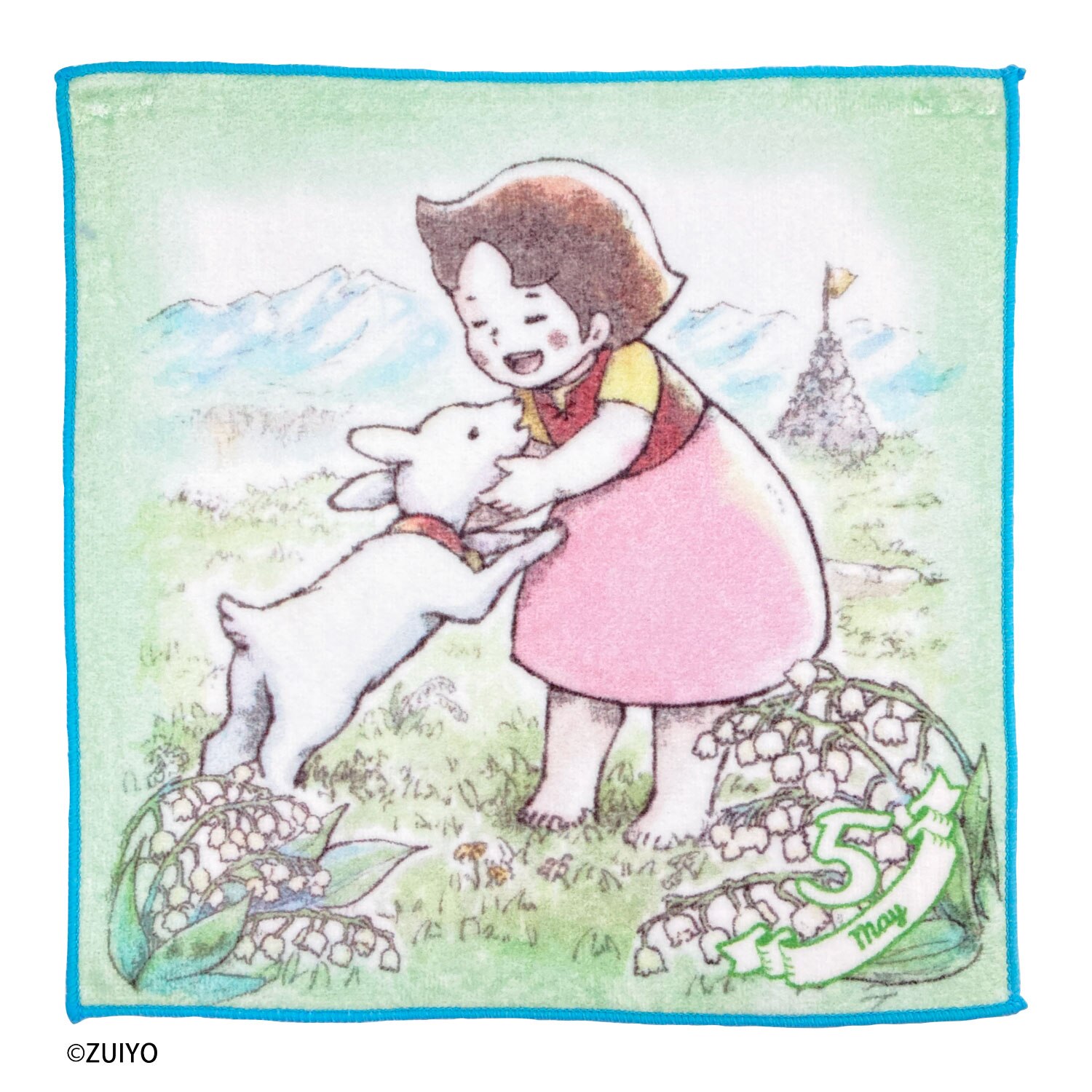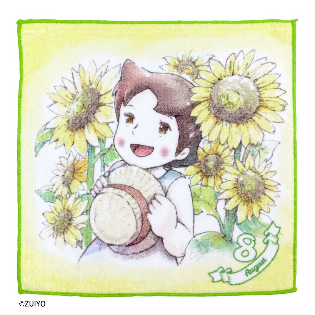 1月から12月まで、それぞれの月に合わせた花のイラストとハイジが可愛らしく描かれたミニタオルです。